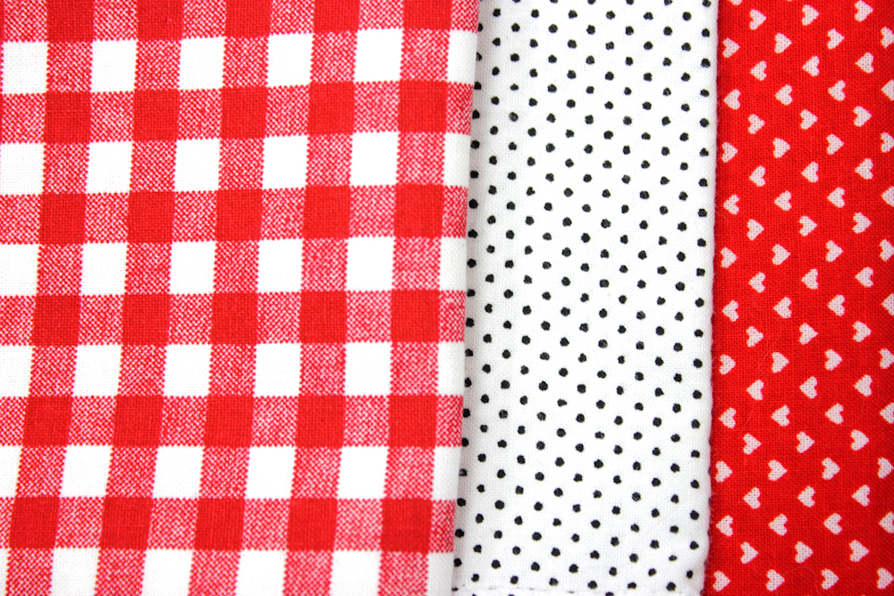 1 Red and White Gingham, 1 B/W Polka Dots, 1 Red/White Hearts