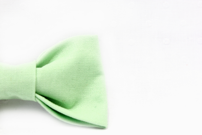 A mint colored clip-on bow-tie, available in Baby and Youth sizes.