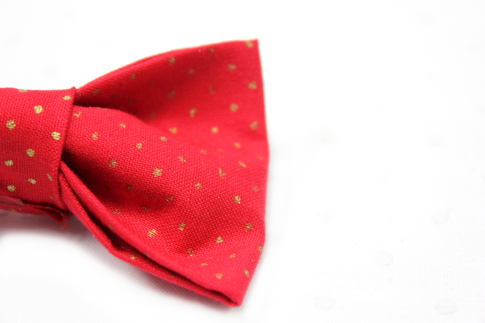 A red, with gold dots, clip-on bow-tie, available in Baby and Youth sizes.